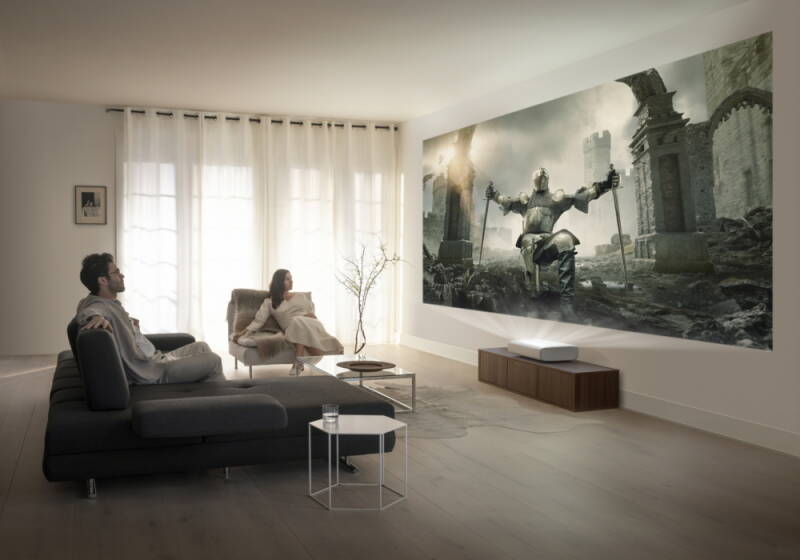 Because i couldn't appreciate a big tv screen in our living room me and my husband decided to buy a samsung premiere short throw beamer and we love it so much!! Our kids aren't drawn to the tv screen any longer and the living room looks peacefull, esthetic and minimal while we still are able to enjoy a wonderfull movie in perfect quality. When we close the light windows we are able to watch everything. If you like a minimal and peacefull interior, i would recommend this very much.